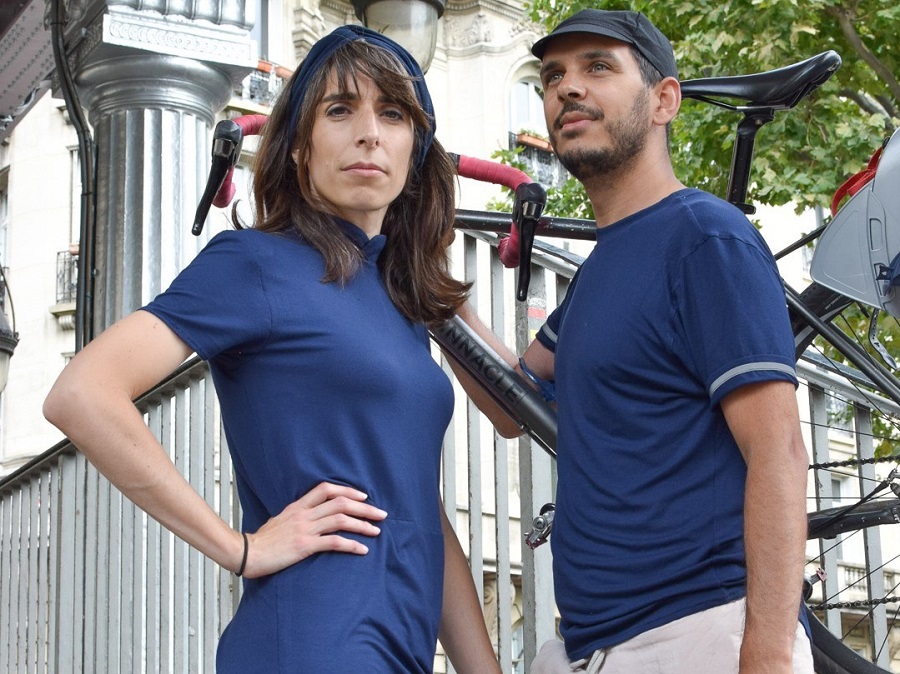 Robe et T-shirt cycliste urbain.e marine fabriqué en France