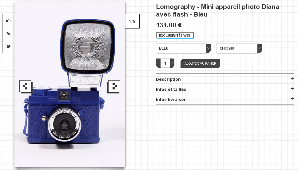 Appareil photo ci-dessus: Lomography – Mini appareil photo Diana avec flash – Bleu à 131€
