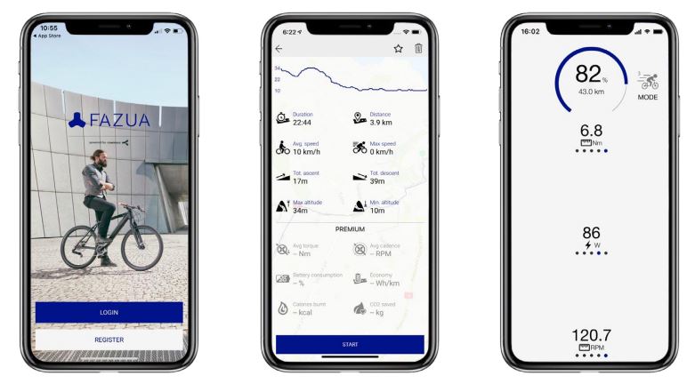 Le moteur peut également être connecté à l’application mobile gratuite FAZUA, permettant de vérifier en temps réel le niveau de charge, l’état et la température de la batterie ou encore de suivre un itinéraire grâce à la fonctionnalité GPS intégrée. L’application peut aussi suggérer des parcours vers une destination, y compris le dénivelé et l’autonomie selon le niveau de charge de la batterie, ou encore calculer le taux de CO2 économisé lors d’un trajet à vélo pour une approche des plus durables. L’application FAZUA est disponible pour les systèmes Android ou IOS, et ses informations peuvent aisément être consultées en roulant grâce au support de téléphone intégré directement dans la potence.