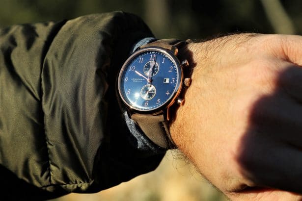 Vous savez à quel point j’aime les montres, alors pour ce look, c’est chez Armogan que je suis allé faire un tour. Créée pour tous les amoureux de vitesse et d’aventures, ce nouveau modèle de montres Armogan est assez sophistiquées tout en gardant un look assez casual. Cette montre – la Regalia est un chronographe à deux compteurs. Le bracelet est en cuir de couleur marron et à l’aspect vintage qui permet une jolie patine naturelle avec le temps et l’usure naturelle de la montre. J’aime le contrastes des couleurs entre le cadran bleu et le bracelet marron. Cela lui donne un cachet spécifique. En plus elle se marie parfaitement avec mon total Look 😉
