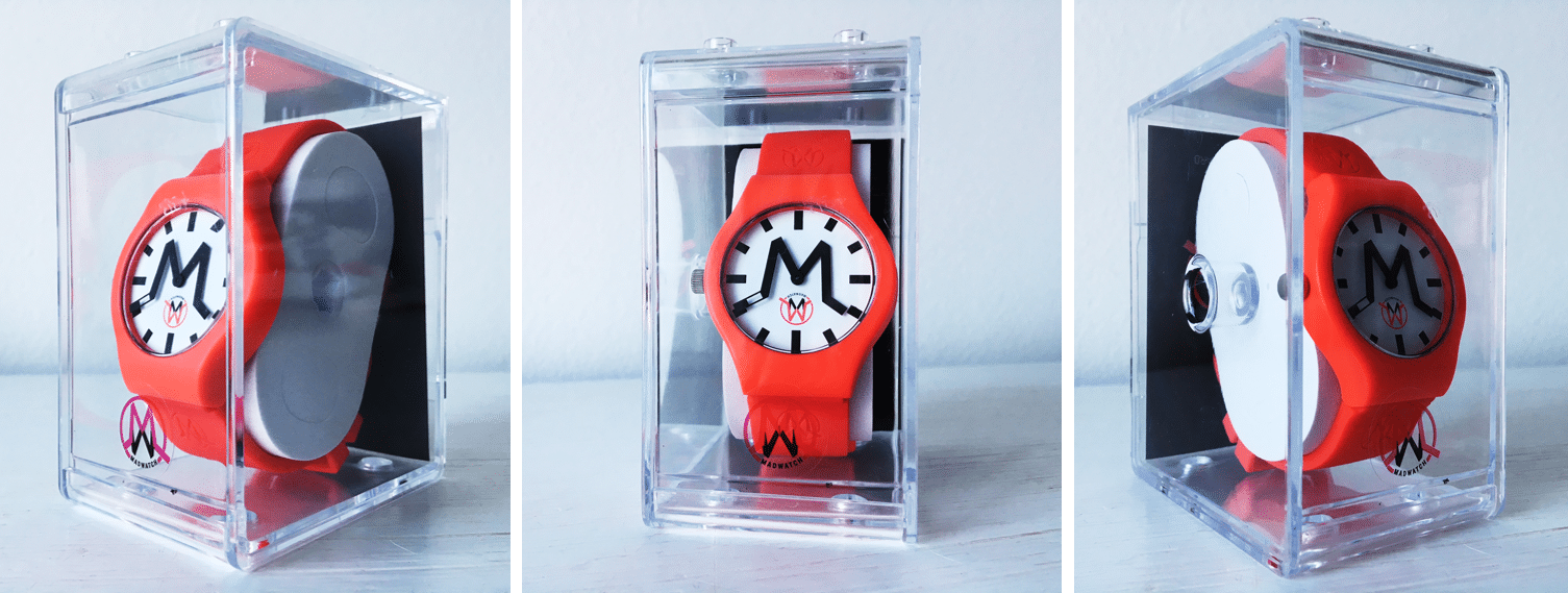 A partir de ça, MADWATCH à conçu une gamme de montres fun, colorées, intrigantes et déroutantes. Il suffit de jeter un œil sur les aiguilles du cadrant et vous comprendrez que le temps est un jeu dans lequel les aiguilles nous désarçonnent.