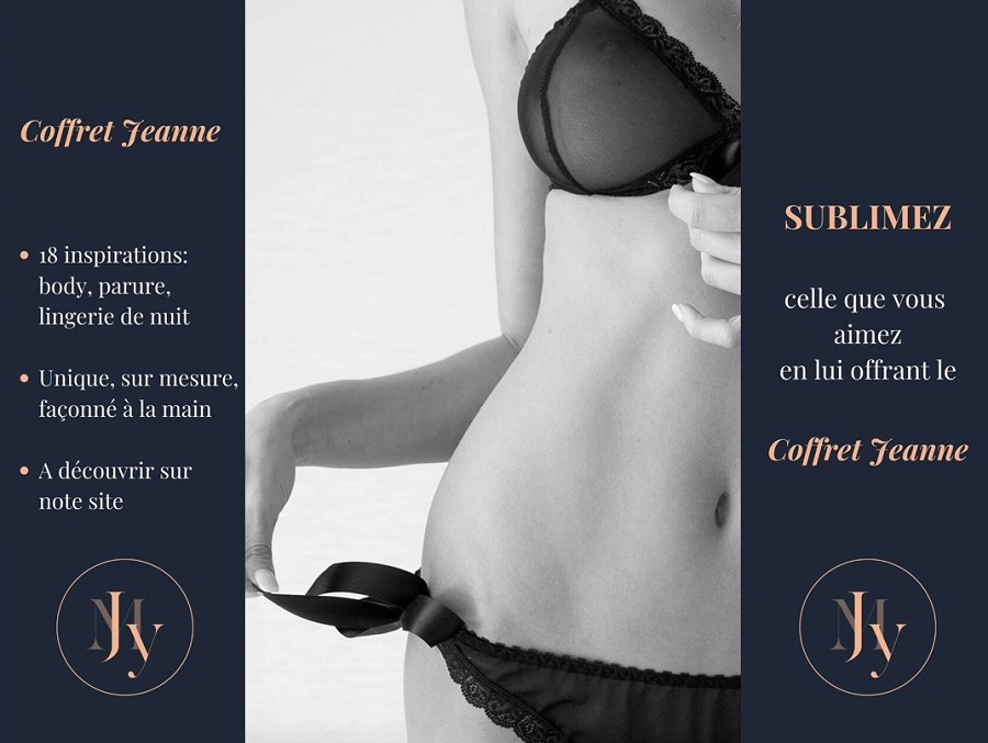 Pour offrir ou s’offrir une parure, un body ou de la lingerie de nuit de la Maison Jeanne Young, la marque a créé le Coffret Jeanne. Une belle idée pour se faire plaisir et un cadeau unique qui permet de choisir un modèle conçu et fabriqué personnellement pour vous. Pour toutes les demandes, un Coffret Jeanne est envoyé avec tout le nécessaire pour prendre les mesures.
