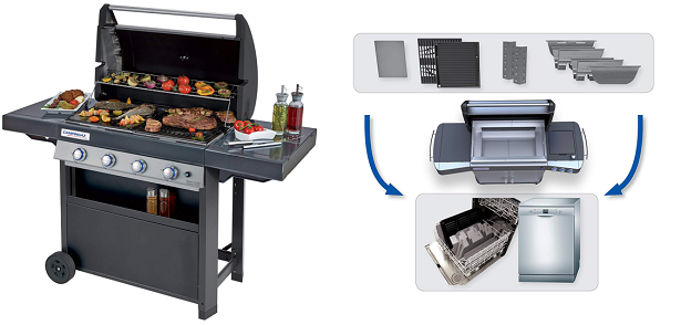 Ce produit polyvalent est équipé de nombreux accessoires, comme du couvercle pour une cuisson à l’étouffée. Ce barbecue fonctionne avec du Gaz Butan, Propane ou du gaz GPL. Une vraie petite cuisine d’extérieur et très pratique.