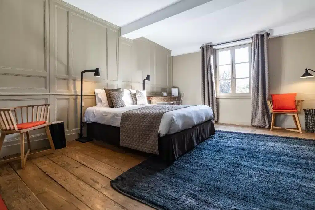 Au menu du petit-déjeuner, des toasts, des galettes bretonnes, du fromage, des œufs servis à la minute, des confitures maisons et des jus de fruits pressés. Et avant de partir en vadrouille, on profite du salon bleu canard aux murs lambrissés, aux canapés Gervasoni et aux tableaux dorés pour se poser quelques minutes, face à la basilique Saint-Sauveur.