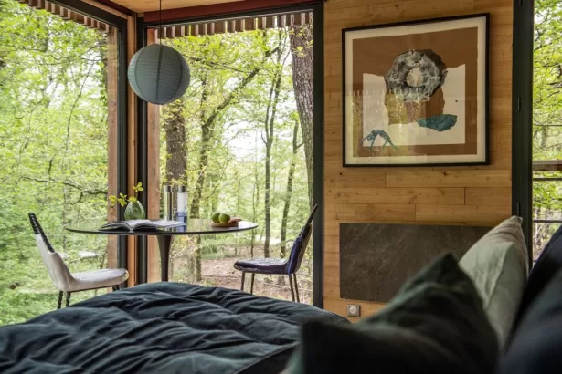 Hôtel situé dans le Val de Loire, le Loire Valley Lodges, ovni de cette sélection, redéfinit le glamping en fusionnant luxe et nature au cœur de 300 hectares de forêt préservée. Ces 18 cabanes de luxe, perchées à 4 mètres au-dessus du sol, s’intègrent parfaitement dans leur environnement.