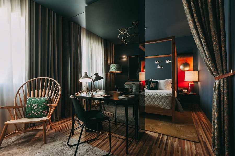 Toutes les chambres portent le nom d’écrivains et d’auteurs portugais. L’établissement, très en hommage à la littérature, fourmille de livres, grimoires et ouvrages rares à la disposition de chacun. La décoration mêle plusieurs styles mais est twisté d’une modernité bien maîtrisée.