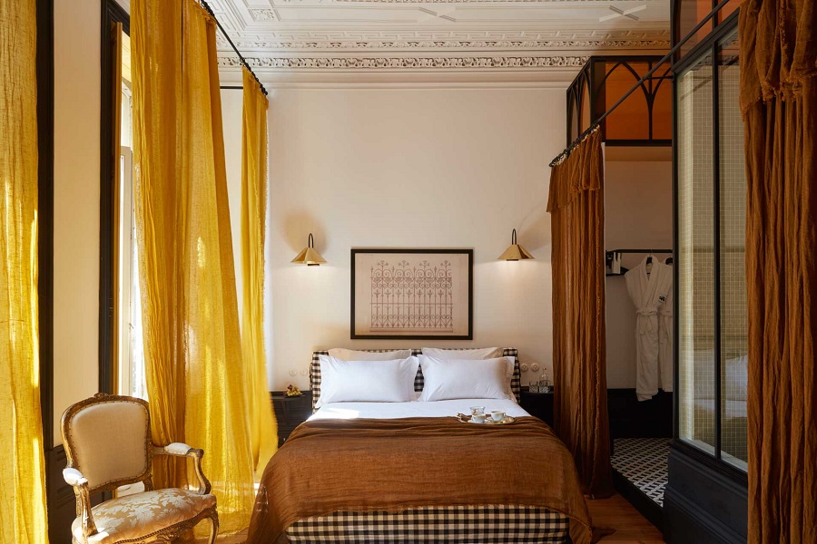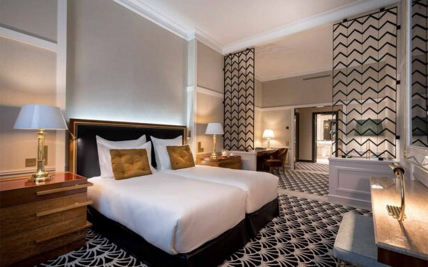 Les 63 chambres et suites de l’établissement ont le mérite de nous faire voyager dans le temps. Au rendez-vous, matériaux précieux, motifs graphiques et mobilier sur-mesure.