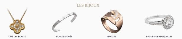 Authentifiés, nettoyés, révisés, les bijoux et montres d’occasion présentés sur le site sont 30 à 50% moins chers vs des produits neufs. C’est une aubaine pour les petites bourses et les collectionneurs compulsifs d’autant plus que ces produits sont généralement en parfait état. En vous créant un compte sur le site, vous pouvez également vous paramétrer des alertes sur les marques et nouveaux modèles qui seraient susceptibles d’apparaître sur le site.