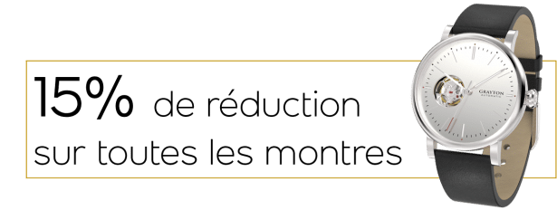 Pour vous j’ai réussi à négocier avec la marque un code promo et vous faire ainsi bénéficier de 15% de réduction sur toutes les montres GRAYTON.