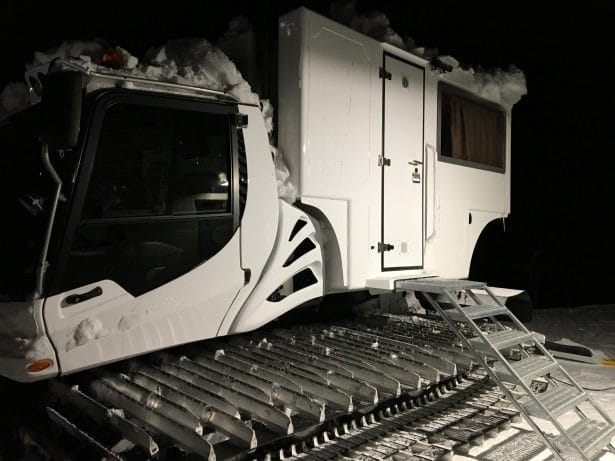 Une dameuse aménagée : une machine-hôtel inédite