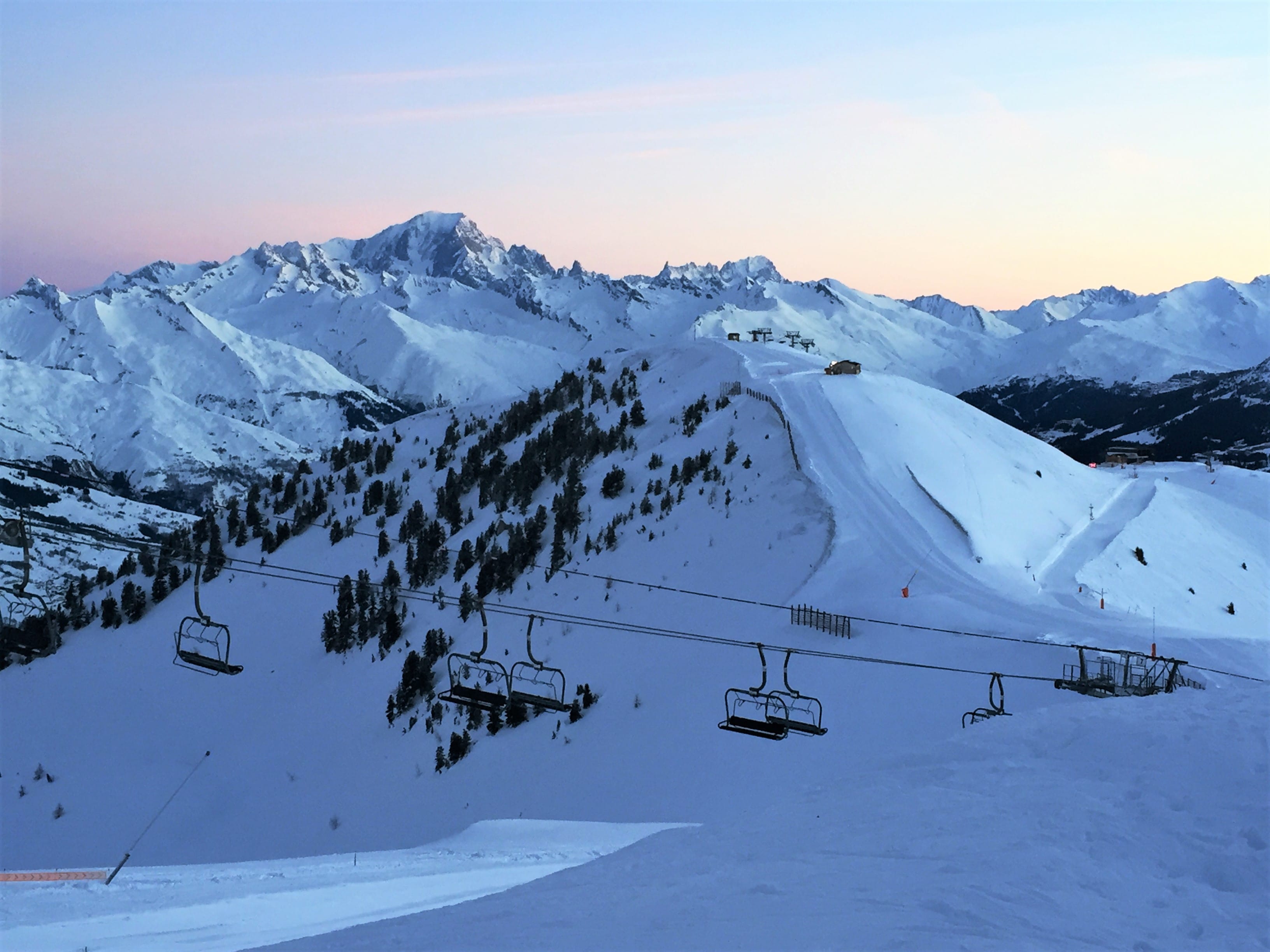 Au petit matin il faut absolument se réveiller avant le lever du soleil pour pouvoir profiter de toutes les nuances de couleurs offertes par le ciel de Savoie. Le Mont-Blanc trône en face de nous et se découvre petit à petit juste en dessous d’un ciel tantôt violet, tantôt rose, tantôt orange puis enfin bleu pastel. En matière de paysage et de lever de soleil c’est la seconde grosse claque de ma vie après le Taj Mahal. On aimerait que ce moment dure toujours et profiter un maximum de cette vue époustouflante sur le plus haut sommet d’Europe et sa chaîne de montagnes qui l’entoure.
