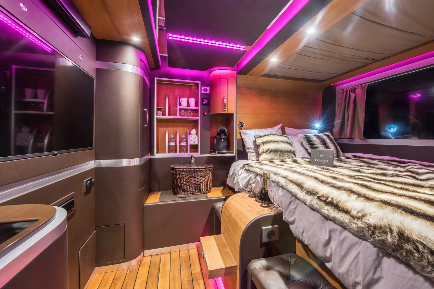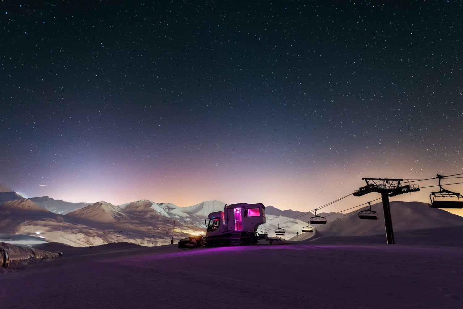 L’idée est très simple : offrir la possibilité aux amoureux de partager le temps d’une nuit, seuls au monde en haut des pistes dans une dameuse aménagée, sous les étoiles du ciel de La Plagne et surtout en face du plus haut sommet d’Europe, le Mont-Blanc. Oubliez le train-train quotidien, vous passerez une nuit incroyable en dameuse de luxe dans un décor de cinéma.