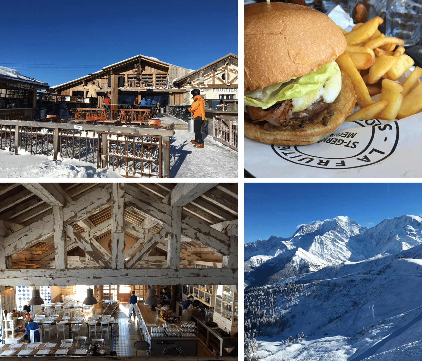 S’il y a un restaurant sur les pistes à tester du côté de Megève-Saint-Gervais, je vous conseille La Folie Douce. Vous connaissez probablement le concept du resto-discothèque sur les pistes qui porte le même nom du côté de Val D’Isère. Celui de Megève-Saint-Gervais se base sur le même concept mais en plus soft. Disons que c’est un peu moins l’orgie. Le concept est simple mais osé: mixer bonne cuisine, spectacle, musique et audace en altitude. 2 restaurants se complètent: La Fruitière pour un déjeuner posé et gourmand + La Petite Cuisine pour un repas sur le pouce. Dans les 2 cas l’ambiance est cool, décontractée et branchée. Du côté de La Fruitière, la vue sur le Mont-Blanc est imprenable comme vous pouvez le voir ci-dessous.