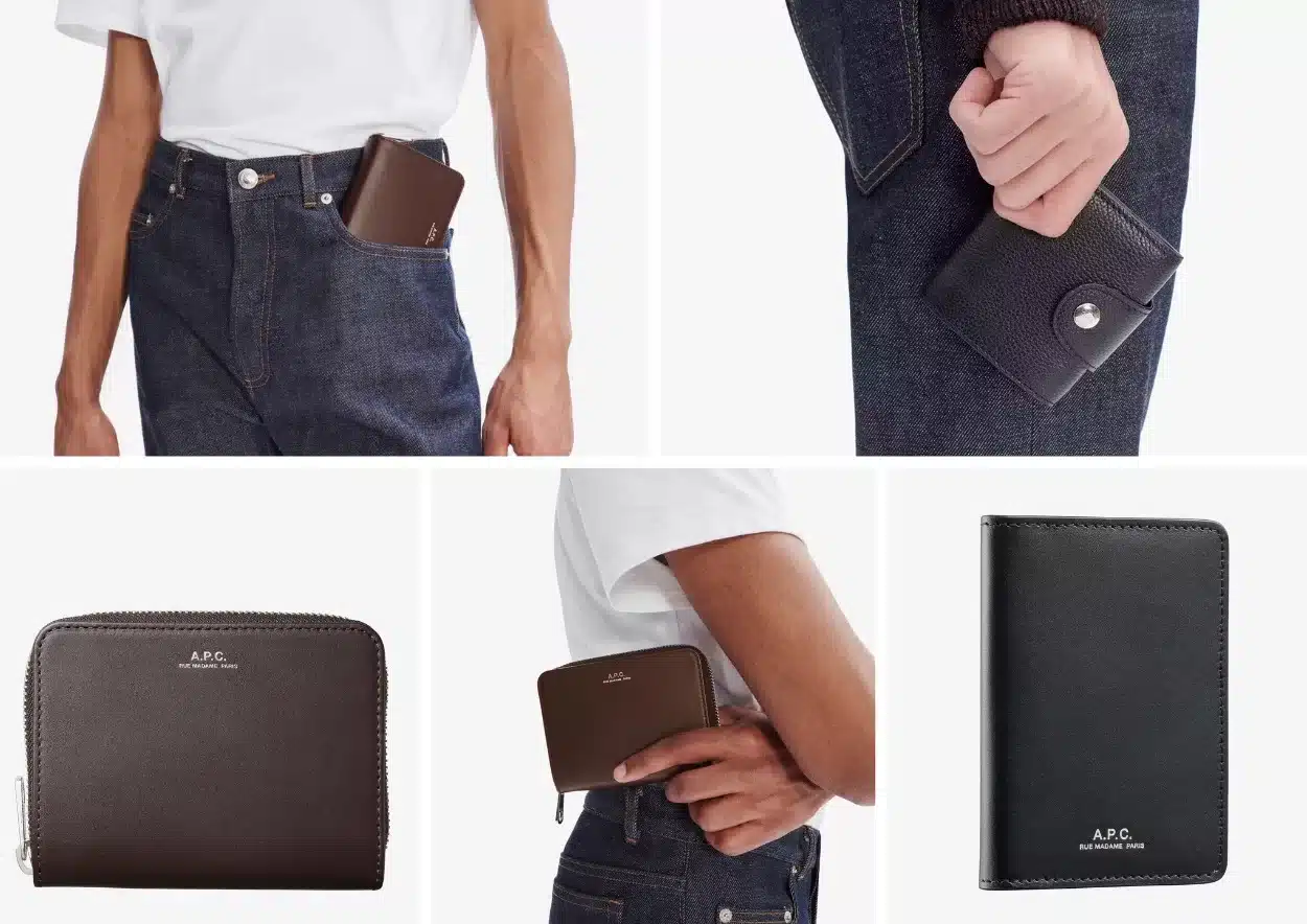 Optez pour un cuir pleine fleur, qui offre une finition sophistiquée et une excellente durabilité. Les couleurs tendance incluent le cognac, le noir classique ou le bleu marine pour un look intemporel. J’aime également la collection couleur vert pin de la maison A.P.C à découvrir ici : A.P.C. petite maroquinerie homme