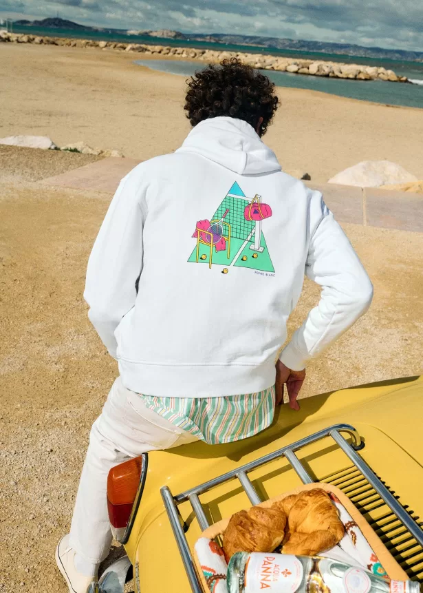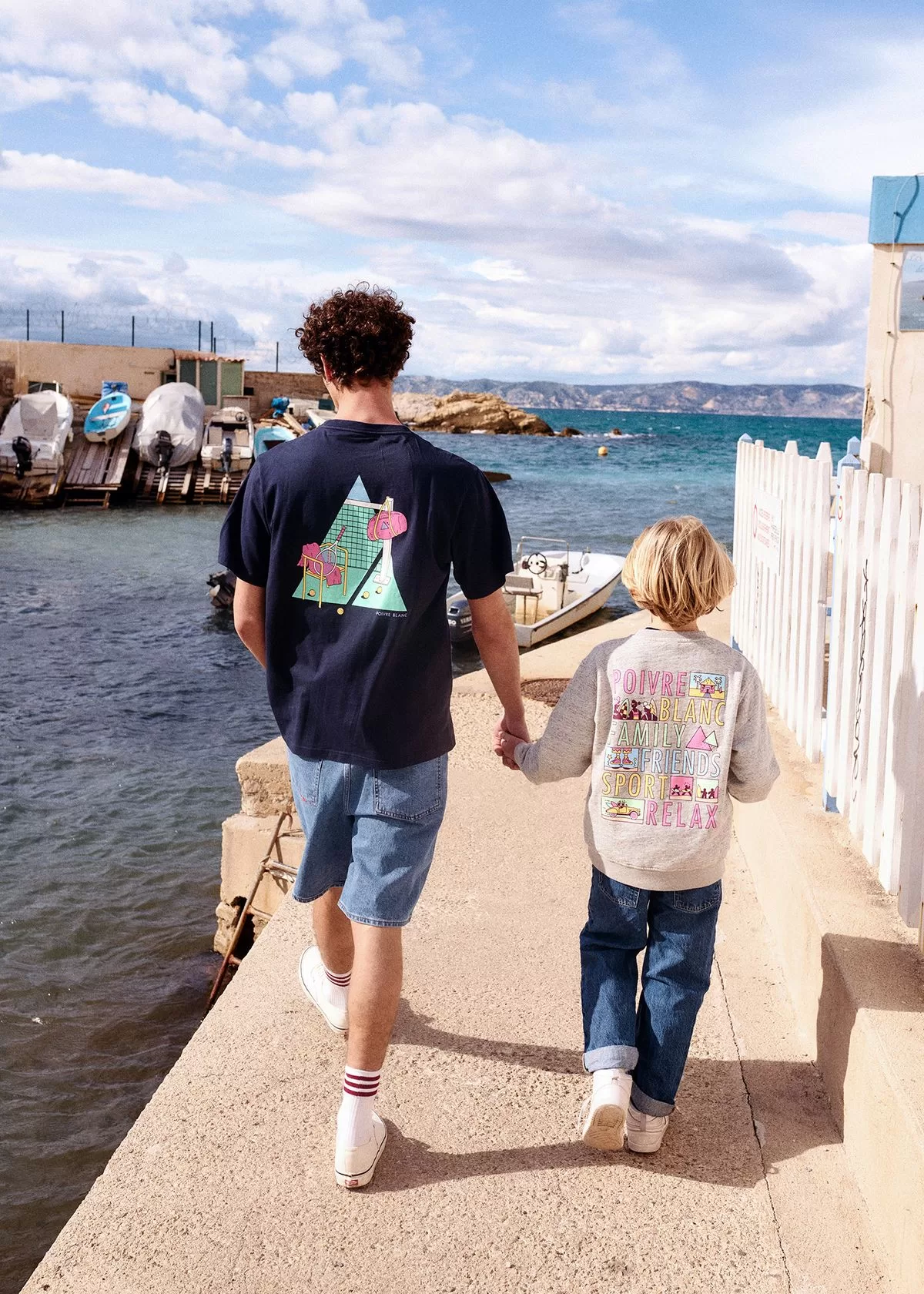 Poivre Blanc signe une ligne 100 % unisexe : les mêmes pièces sont proposées aux hommes, femmes et enfants. C’est l’un des atouts forts de cette collection : un style libre, inclusif et intergénérationnel, qui rassemble autour d’un imaginaire commun. Celui des vacances d’été, des longues journées sur la plage, des moments partagés en famille ou entre amis.
