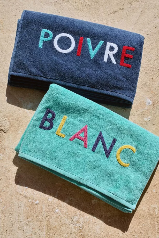 - La serviette de plage ultra-colorée : accessoire culte de la collection, elle évoque immédiatement les souvenirs d’enfance et le farniente en famille.