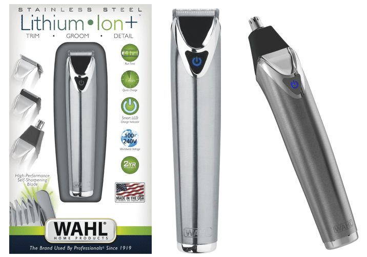 Avec la Stainless Steel de Wahl, tailler et dessiner sa barbe est un jeu d’enfants. Design et fiable, elle permet de raser et d’entretenir sa barbe très facilement. Elle dispose de trois guides de coupe interchangeables pour tailler sa barbe suivant ses envies (épaisse, moyenne ou barbe de 3 jours) et trois têtes pour éliminer les poils moins faciles d’accès (nez, oreilles et sourcils). Ultra performante grâce à sa batterie Lithium Ion, la tondeuse à barbe Stainless Steel offre 4h d’utilisation pour 1h de charge seulement. Enfin, elle est également livrée avec une pochette pour la ranger et la transporter facilement. La tondeuse à barbe Wahl Stainless Steel est disponible au prix public conseillé de 99,99€ TTC.