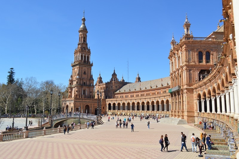 [dropcap]R[/dropcap]endez-vous ensuite Plaza de Espana à 10-15 minutes à pieds des Archives des Indes. Sur la route vous passerez devant le somptueux hôtel Alfonso XIII (je crois que c’est un palace d’ailleurs). Ensuite, longé l’université de philosophie de Séville et si possible rentrez à l’intérieur uniquement pour passer de l’autre côté et rejoindre l’avenue qui mène à la Plaza de Espana. Profitez-en pour jeter un œil à ce monument qui sert d’université aux jeunes étudiants sévillans.
