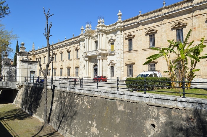 [dropcap]D[/dropcap]ifficile de se tromper, les Archives des Indes se situent en face de la poste et à côté de la cathédrale de Séville. Pour les fans d’histoire, ce bâtiment répertorie bon nombre de documents et reliques de l’histoire de l’Espagne et surtout de la période 1800. Nous avons découvert ici l’histoire de la flotte espagnole « Mercedes » décimée par les Anglais en 1802. Cet événement a visiblement marqué l’histoire de l’Espagne puisque la visite lui est dédiée. Cette époque marque également la conquête de l’Amérique du nord et du sud mais également la période où Napoléon voulait conquérir le monde et mettre une raclée aux Anglais. A cette époque en effet, Anglais et Français se voyaient partager le monde. C’est une époque bien lointaine… Nous ne sommes pas tellement fans d’histoire, pourtant cette visite ne nous a pas fatigué. Au contraire, nous sommes repartis plus intelligent qu’en arrivant, ce qui donne un bon point à cette visite. Compter 1h20 pour la visite GRATUITE en y allant tranquille Émile. Ensuite direction Plaza de Espana.