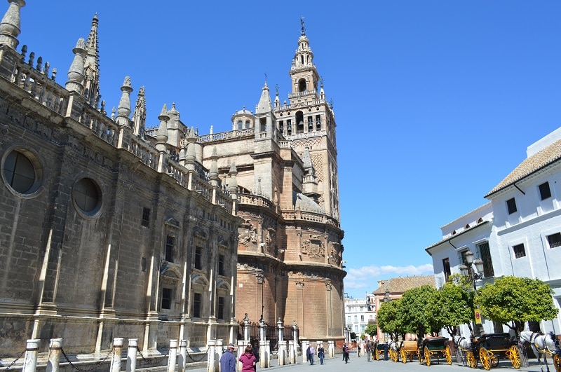 [dropcap]D[/dropcap]ès le matin, après un bon petit déjeuner rendez-vous directement à la cathédrale de Séville pour l’ouverture à 11h. Il vous faudra débourser 9 euros par personne pour profiter de ce monument grandiose. En basse saison nous avons fait environ 20 minutes de queue avant d’arriver aux caisses donc imaginez en haute saison…