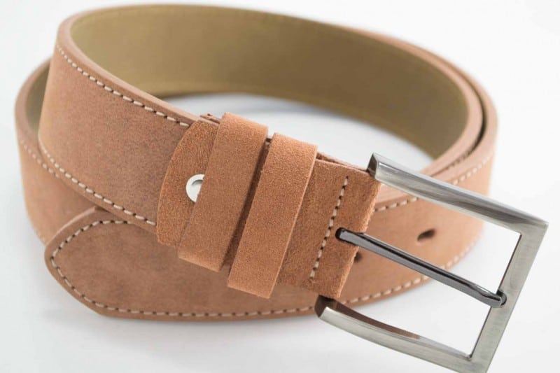 Autrefois réservé aux chaussures, le daim a fait son apparition chez les ceintures et donne une impression visuelle de force tranquille. On aurait envie d’y toucher !