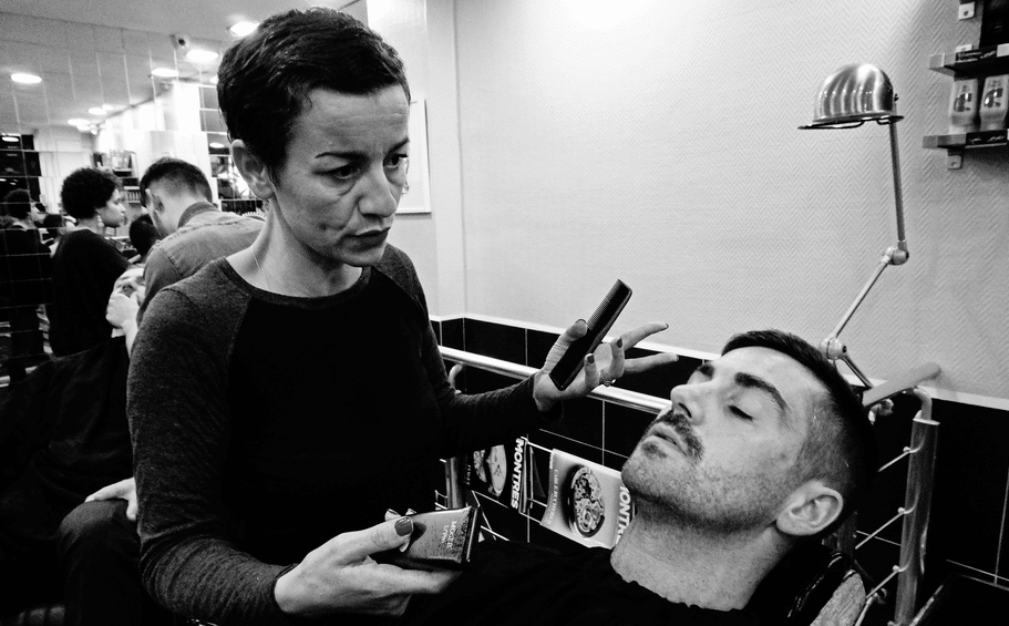 Ma formation remonte aux années 90. Après une expérience en salon et en esthétique, j’ai fait mes premières armes comme barbière auprès de deux professionnels spécialisés en hommes. Il n’y avait alors aucun barbier femme et il n’a pas été facile de me faire une place, notamment dans le premier salon du 10ème tenu par un turc, mais j’y ai appris toutes les bases de mon métier.