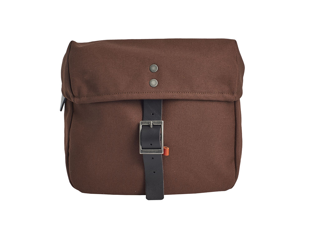 La sacoche pour vélo Sellerie Georges en toile est munie d’une fixation par sangle lorsqu’on ne souhaite pas la détacher régulièrement mais peut également se porter en besace grâce à une bandoulière avec pression.