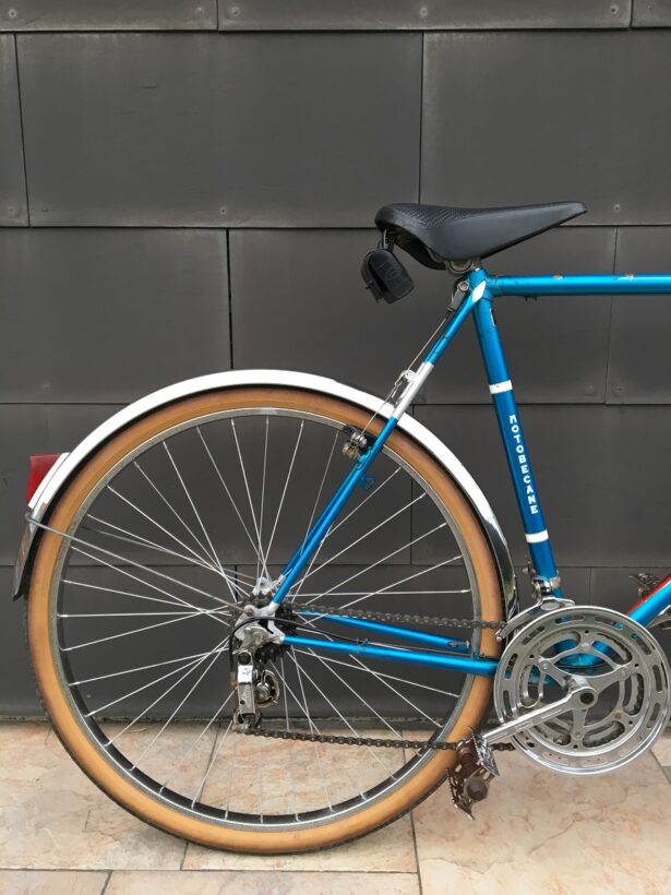 Il y a quelques semaines, j’ai fait l’acquisition de ce vélo vintage du milieu des années 70. Un Motobécane Grand Touring bleu retrouvé dans le fin fond d’un hangar par son propriétaire. Mis en vente sur LeBonCoin à 30€, je n’ai clairement pas hésité même si ce vélo était dans son jus. J’ai vite identifié le potentiel de cette machine. Après un bon nettoyage et quelques heures passées à démonter, remonter et accessoiriser l’engin je suis assez content du résultat.