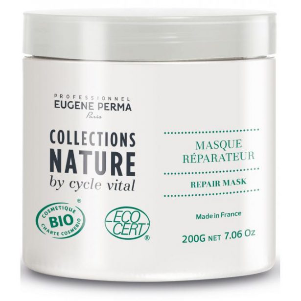 Apporte brillance, souplesse et hydratation. Le Masque Réparateur Collections Nature by Cycle Vital d’EUGENE PERMA Professionnel allie les vertus hydratantes et nourrissantes de l’oléine de Karité, enrichie d’un complexe d’huiles sélectionnées, au pouvoir renforcé de l’argile.