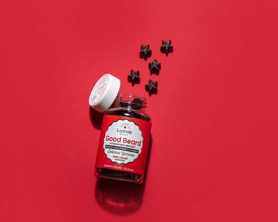 Voici la dernière nouveauté du laboratoire Lashilé Beauty pour nous les hommes : les gummies GOOD BEARD pour favoriser la beauté de la barbe, des moustaches et des cheveux.