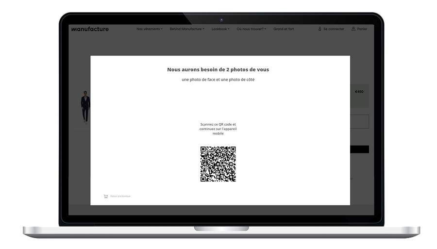 Après avoir renseigné votre taille et votre poids, vous êtes redirigé vers l’app mobile au travers de laquelle vous allez pouvoir partager 2 photos de vous selon les instructions. Une fois les photos prises, elles sont ajoutées à votre compte et serviront de bases pour la réalisation du costume. Inutile de sortir le mètre de couture pour la prise de mesure, un smartphone et 2 photos suffisent, c’est fascinant !!!
