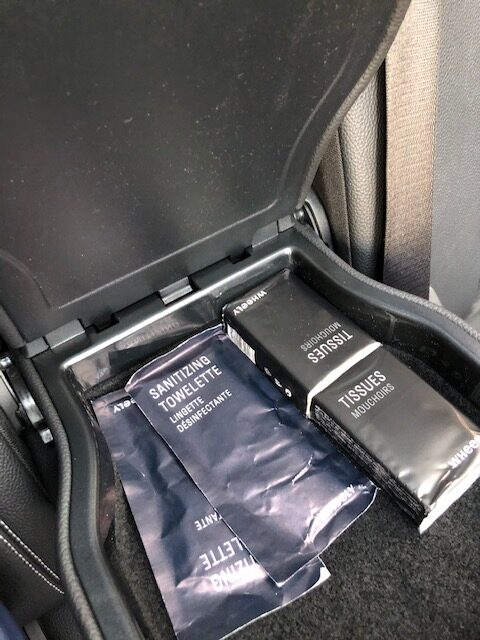 Je suis très bien accueilli par Jacques, qui m’ouvre la portière. L’intérieur du véhicule est immaculé. On sent qu’il a été désinfecté récemment, au-delà des normes hygiéniques en vigueur qui prévoient au moins un nettoyage par jour. Une bouteille d’eau est mise à disposition du passager, ainsi que des mouchoirs et serviettes désinfectantes (siglés Wheely svp !).