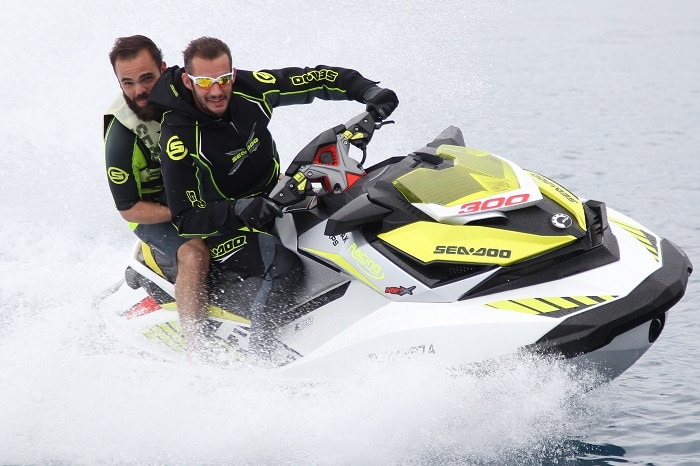 [dropcap]V[/dropcap]oici le monstre de la gamme SEA-DOO avec 300 cv et plus de 120 Km/h sur l’eau ! Un engin hors du commun dont les performances dépassent toutes les limites que vous pensiez atteindre sur un engin de série. À expérimenter derrière un pilote aguerri ! (Permis bateau nécessaire). C’est d’ailleurs ce que j’ai fait. A deux nous sommes en effet montés à plus de 100K/h sur l’eau.