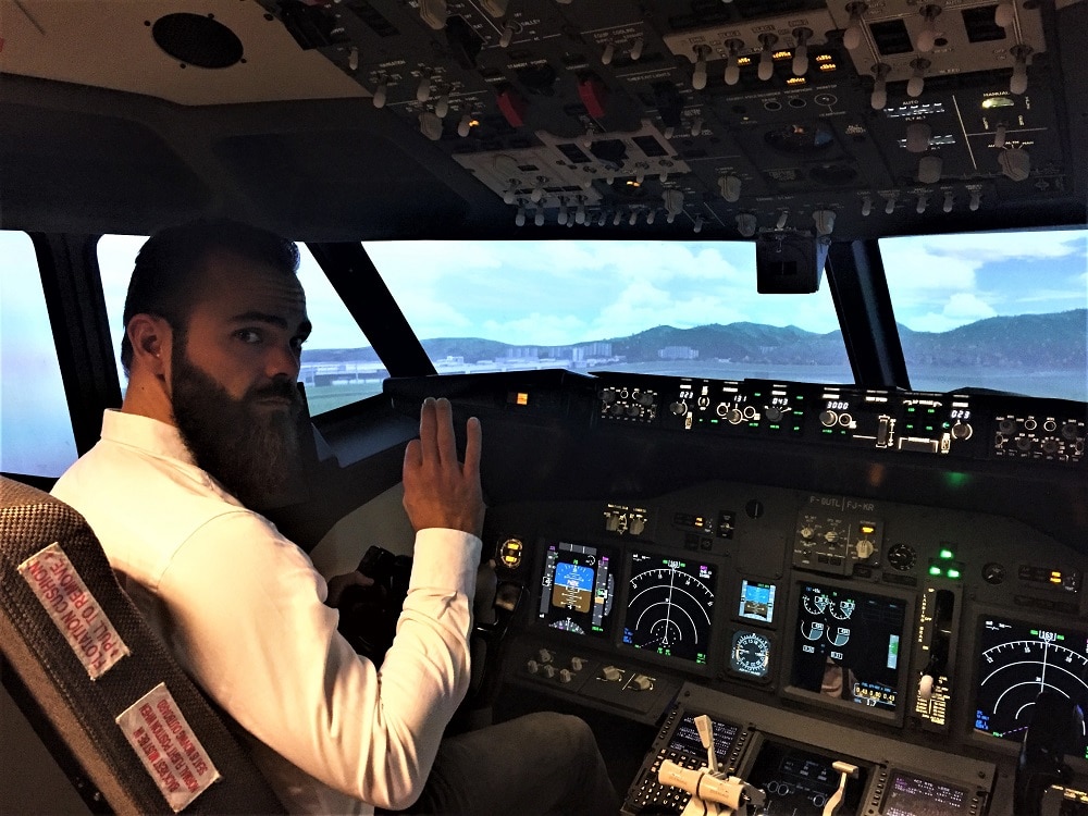 Grace à notre co-pilote professionnel, nous prenons rapidement les commandes de l’engin pour nous envoler et piloter le temps de quelques minutes. Un vrai plaisir ! Non ce n’est pas un jeu vidéo, c’est bien plus que cela, c’est même plus sérieux que cela. Même le pilote nous affirme que le simulateur que nous avons entre les mains et plus sophistiqué et réalisme que dans certaines école de pilotes. En plus d’une leçon de pilotage, c’est le moment d’en savoir plus sur la formation du pilotage qui nous accompagne, de connaitre et comprendre sa passion.