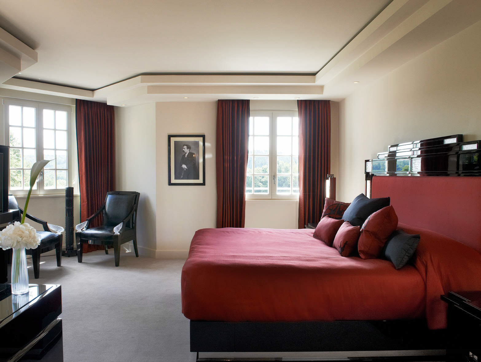 En premier lieu, les extérieurs ont été restaurés à l’identique, y compris les volets bleus ! Même souci du détail à l’intérieur où l’escalier noir est une reproduction exacte de celui d’origine ! Seulement six suites pour et hôtel de grand luxe où le raffinement est poussé à son comble et où la déco souligne en permanence la créativité de René Lalique mettant en avant des pièces iconiques.